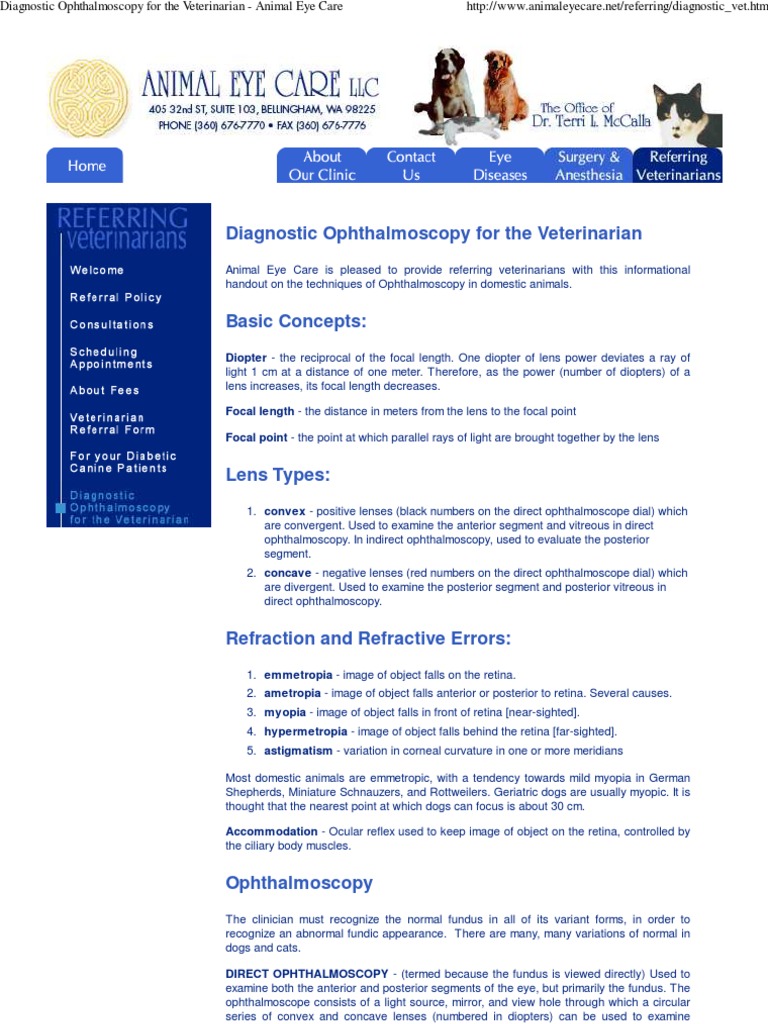 Diagnostic Ophthalmoscopy for the Veterinarian Animal Eye Care